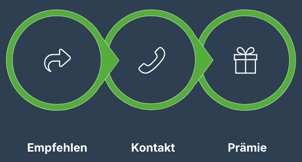 Kein Papierkram, keine komplizierten Formulare – unser Empfehlungsprozess ist bewusst unkompliziert gehalten. In nur drei einfachen Schritten sichern Sie sich Ihre Prämie. Alles Weitere übernehmen wir für Sie.